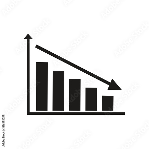 Black and White Graph with Descending Arrow, Business Decline Concept.