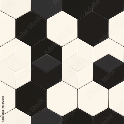 Black and White Hexagon Pattern: A seamless, geometric texture of alternating black and white hexagons, creating a visually captivating and modern design. Ideal for backgrounds, wallpapers