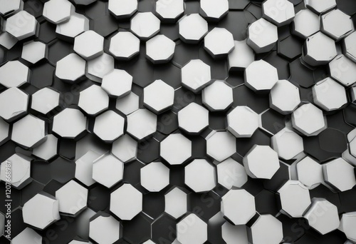 Black and white hexagonal honeycomb pattern ideal for textile or wallpaper design, repetitive, graphic, seamless