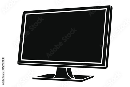 Black and white illustration of a computer monitor on a white background technology display