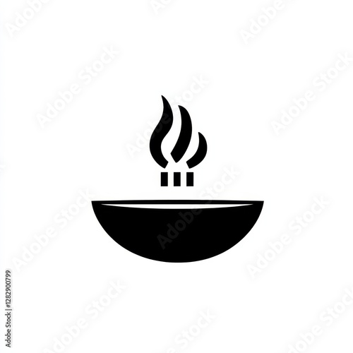 Black and white image depicting a bowl with rising flames, symbolizing spirituality or a ritualistic symbol.