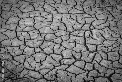 Black and white image of Background of cracked soil dirt or earth during drought