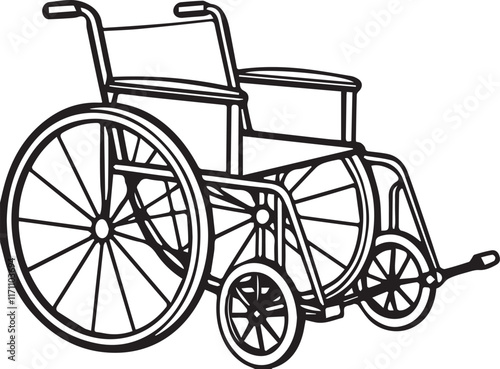 Black and white line art Silhouette wheel chair vector doodle art in white background