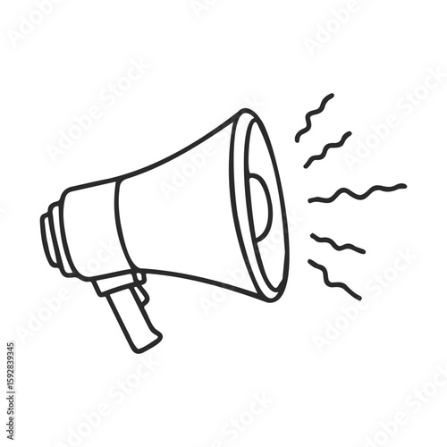 Black and white megaphone line art with sound waves