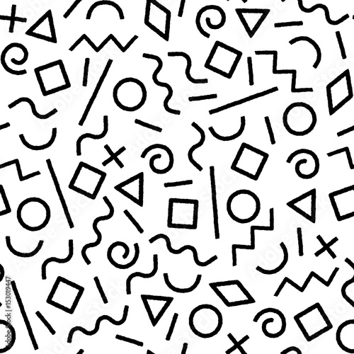 Black and white memphis abstract geometric shapes seamless pattern, vector
