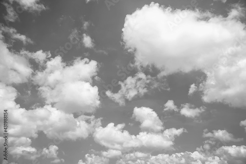 Black and white photo, white textured fluffy clouds in the sky.. clouds in the sky black and white photo.