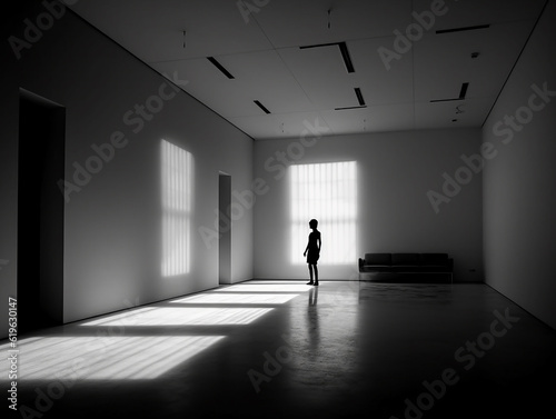 black and white picture of a silhouette in the empty room generative AI