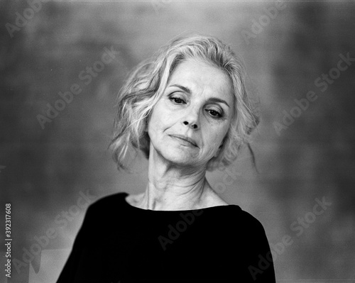 Black and white portrait of a senior woman in studio