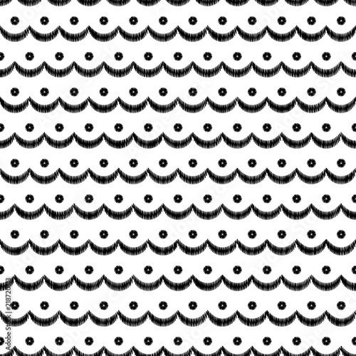 Black and white scalloped lacy edge embroidery, seamless pattern, vector