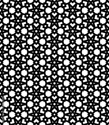 Black and white seamless abstract pattern. Background and backdrop. Grayscale ornamental design. Mosaic ornaments. Vector graphic illustration. EPS10.