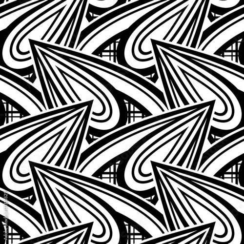 Black and White Seamless Pattern with Ethnic Motifs. Endless Texture with Abstract Design Element. Art Deco, Nouveau, Islamic, Arabic Style. Pressured Printing Template. Vector Contour Illustration