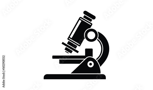 Black and white silhouette of a scientific microscope on a white background