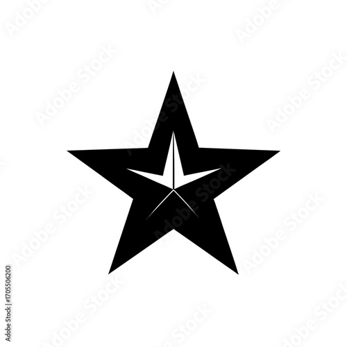 Black and white star with inner star shape on transparent background