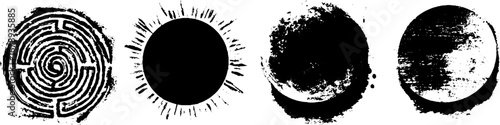 Black and white stencil set featuring labyrinth and abstract circular designs