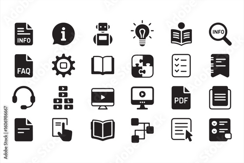 Black and White Symbols for Information, FAQ, and Digital Files in Simple Icons