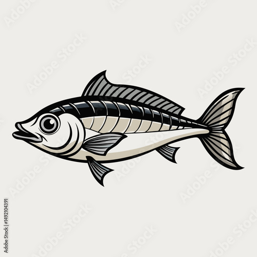 Black and White Tuna Fish Illustration – Stylized Side Profile Drawing for Logos, Science, or Symbolism SVG