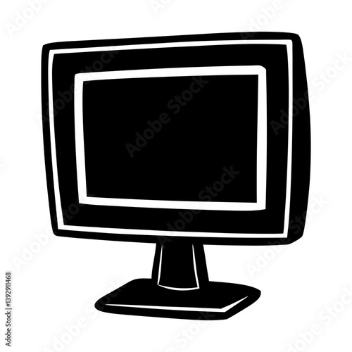 Black and white vector illustration of a desktop computer monitor screen display device silhouette