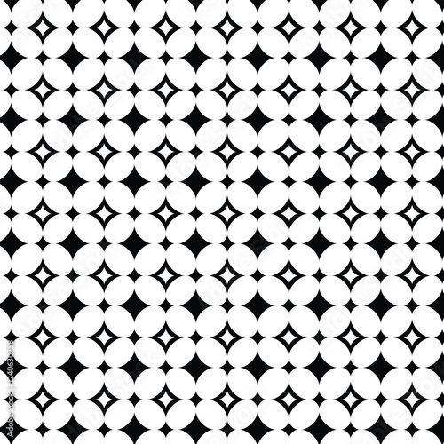 Black and white vector seamless pattern with small diamonds , star shapes ,rhombuses .Abstract black and white geometric texture .Simple minimal wide repeat background .