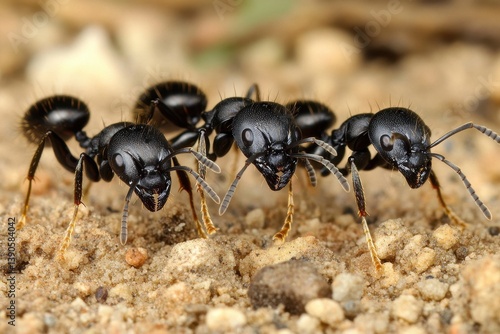Black ant colony traversing the ground in search of food and resources, Black Ant colony walking on the ground
