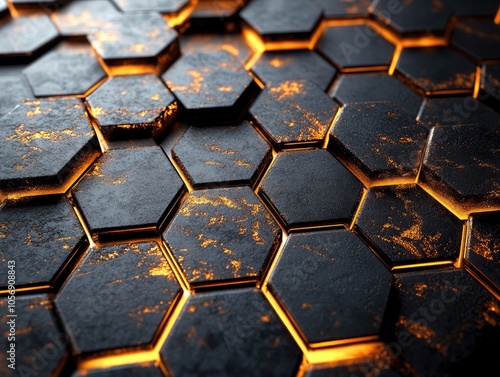 Black background wallpaper with a luxurious golden geometric hexagon pattern
