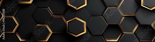 Black background with a gold hexagon pattern Black geometric wallpaper for interior decoration Generative AI