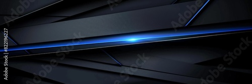 Black background with blue neon lines and geometric shapes. Dark abstract technology background Dark grey black abstract geometric background, banner