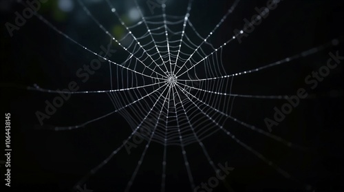 Black background with white spider webs, wallpaper, hanging from the left and right sides of the screen The webs are thin and long, background with copy space
