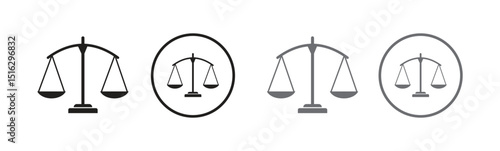Black balance scale icon representing justice and law on a white background, balance scale silhouette, balance scale vector icon