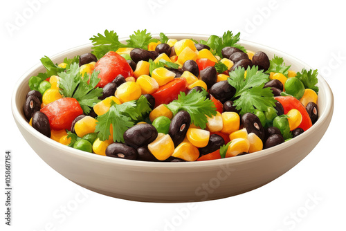Black bean and corn salad with cilantro, PNG isolated on transparent background, white background.