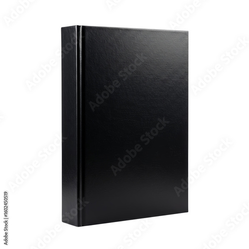 Black binder folder with smooth surface on white background, concept of layouts on transparent background