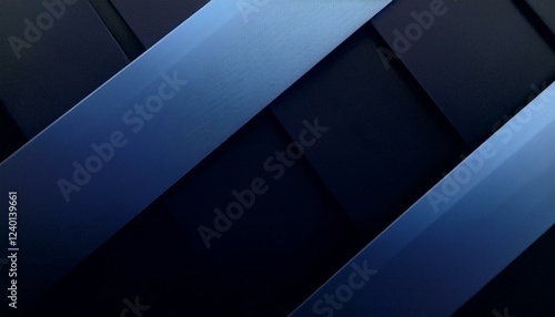Black blue abstract modern background for design. Dark. Geometric shape. 3d effect. Diagonal lines, stripes. Triangles. Gradient. Light, glow. Metallic sheen. Minimal. Web banner. Wide. Panoramic.
