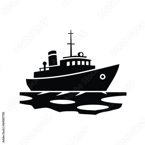 Black boat silhouette on icy water vessel ship