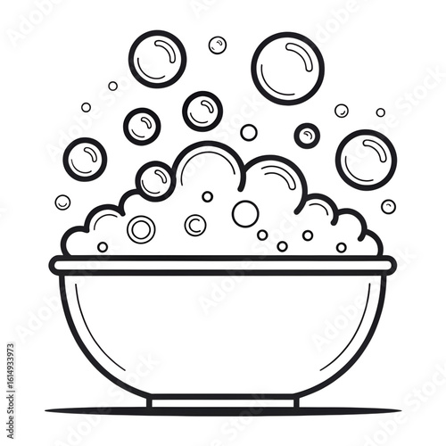 Black Bowl with Soap Suds and Bubbles Outline Icon