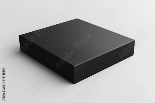 black box isolated on white background, A black box mockup isolated on a white background. The design is sleek and minimalist, with sharp edges and a smooth, matte finish