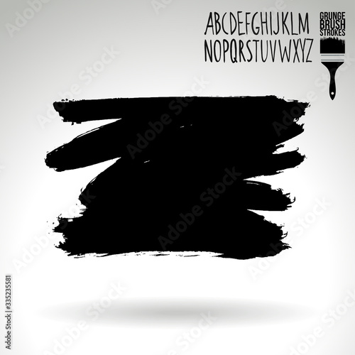 Black brush stroke and texture. Grunge vector abstract hand - painted element. Underline and border design.