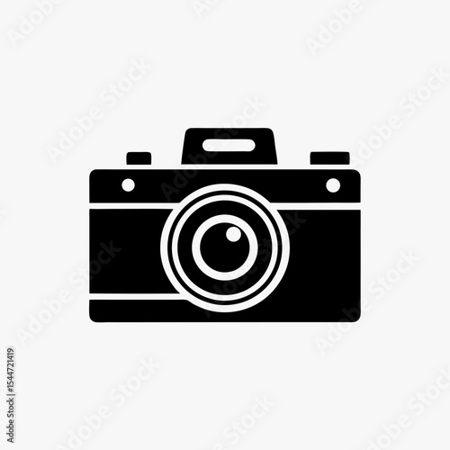 Black Camera Icon Isolated on White Background – Vintage Style Photography Symbol