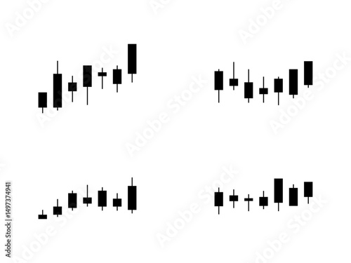 Black Candlestick Stock Trading Graph Icon Set on White Background. Vector Illustration