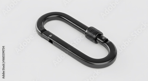 Black Carabiner: A close-up shot of a sleek, black carabiner against a plain backdrop, showcasing its robust design and functional elegance.
