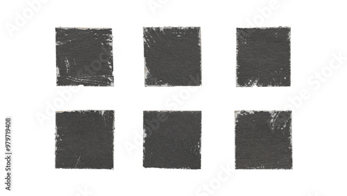 Black cardboard squares on transparent background, isolated box paper frames in y2k grunge style
