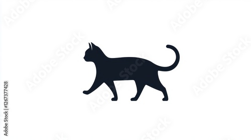 Black cat walking on white. Ideal for pet adoption, symbol, logo, web graphics, backgrounds