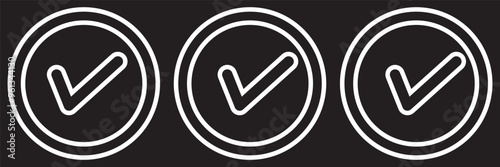 black check mark icon set isolated on white background. circle tick approved symbol. vector Illustration