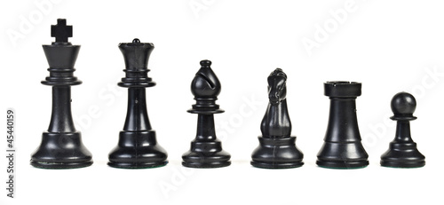 Black chess pieces in order of decreasing