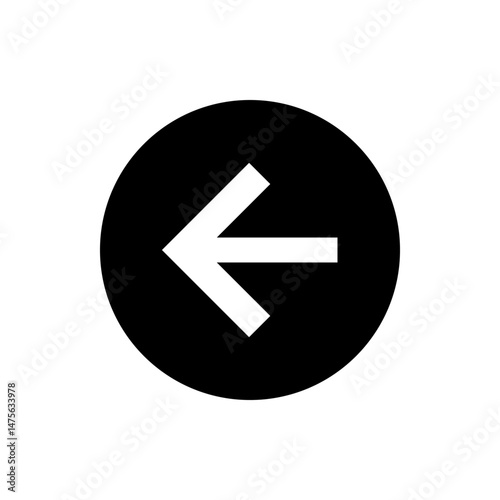 Black circle containing a white arrow pointing to the left direction indicating navigation or direction back
