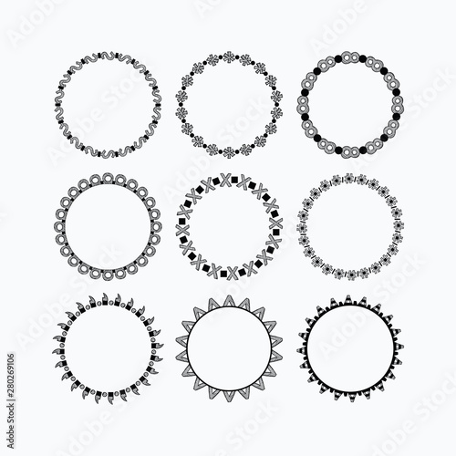 Black circle line pattern signs and symbols border emblems icons set on white background