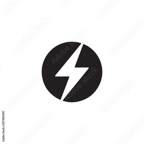 Black circle with white lightning bolt on a white background design