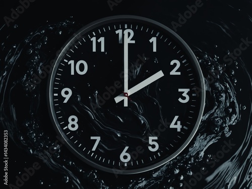 Black clock face with water ripple effect