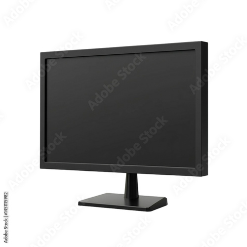Black Computer Monitor on White Background. On a White or Clear Surface [Transparent Background PNG].
