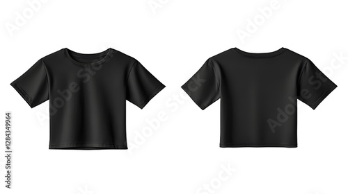 Black cropped t-shirt mockup back and front view isolated on white background for brand presentation.