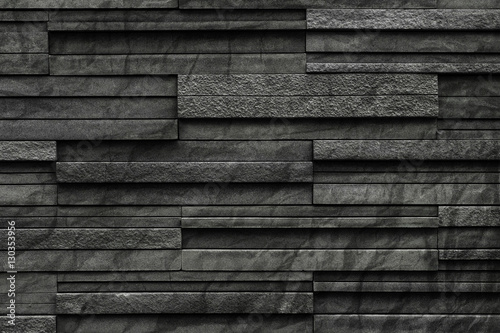 Black crumpled bricks slate texture background, slate stone wall texture