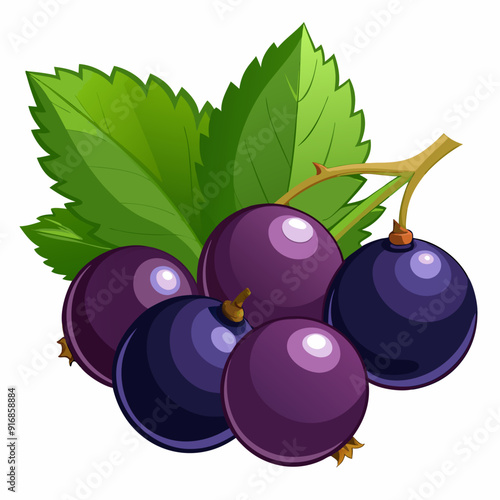 Black Currants with Green Leaves on a Branch